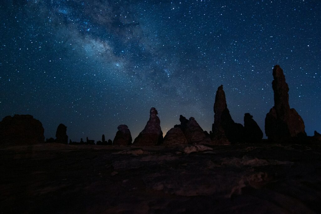 Al caer la noche, la iluminación tenue y el aire fresco del desierto transforman la zona en un escenario íntimo y evocador. Es fácil imaginar cómo debió de ser la vida aquí cuando las caravanas hacían parada en la región.