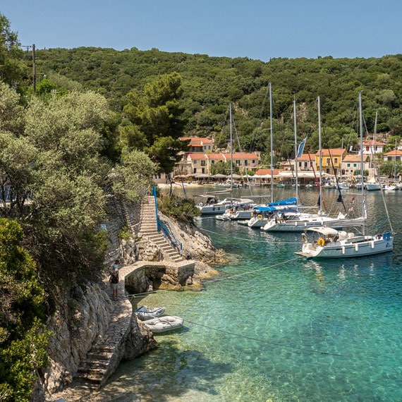 Esmorzar a bord. Bany a la Badia de Skorpios. Visita a les coves de Papanikolis, accessibles només per mar. Passeig per l’illa de Meganisi. Després d’un bany, dinar a bord. Recorregut en vaixell privat per la part oriental de l’illa fins Sivota. Sopar en una taverna tradicional de poble pesquer. Allotjament a bord.